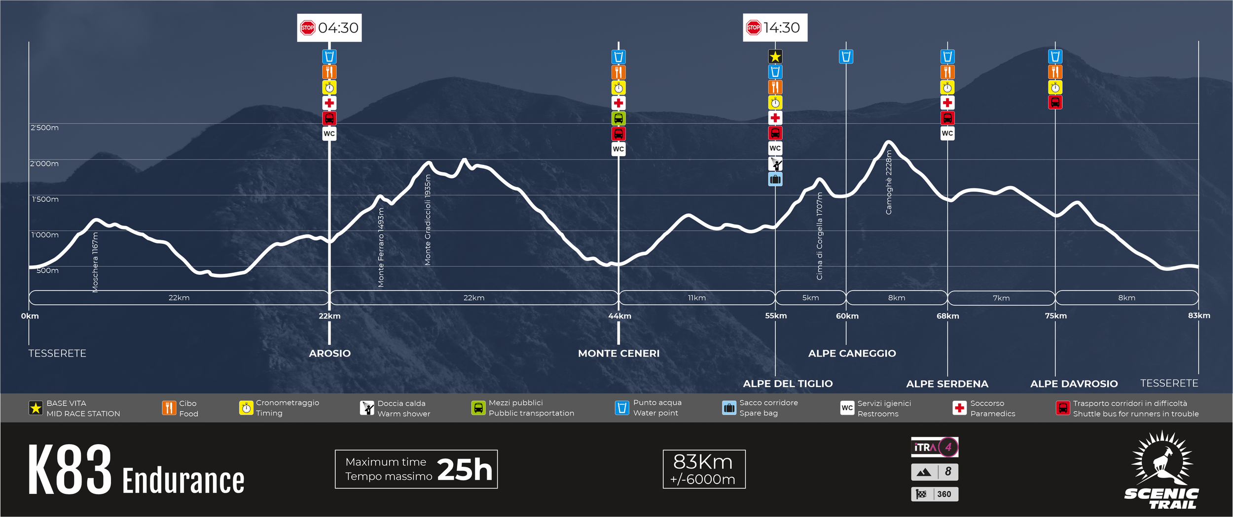 Questa gara nasce dal desiderio di offrire un’esperienza intensa e completa: un viaggio che mette alla prova, ma che resta accessibile a chi vuole spingersi oltre la maratona e le prime ultra, senza affrontare ancora le distanze più estreme. Negli anni Scenic Trail è diventato sinonimo di emozioni e paesaggi straordinari, capace di conquistare atleti di ogni livello. La K83 non è una via di mezzo: è una sfida vera, un traguardo che vi darà la certezza di appartenere alla grande famiglia degli ultra runner. Non abbiate paura: la notte è la vostra alleata, e la K83 Endurance vi sta aspettando.